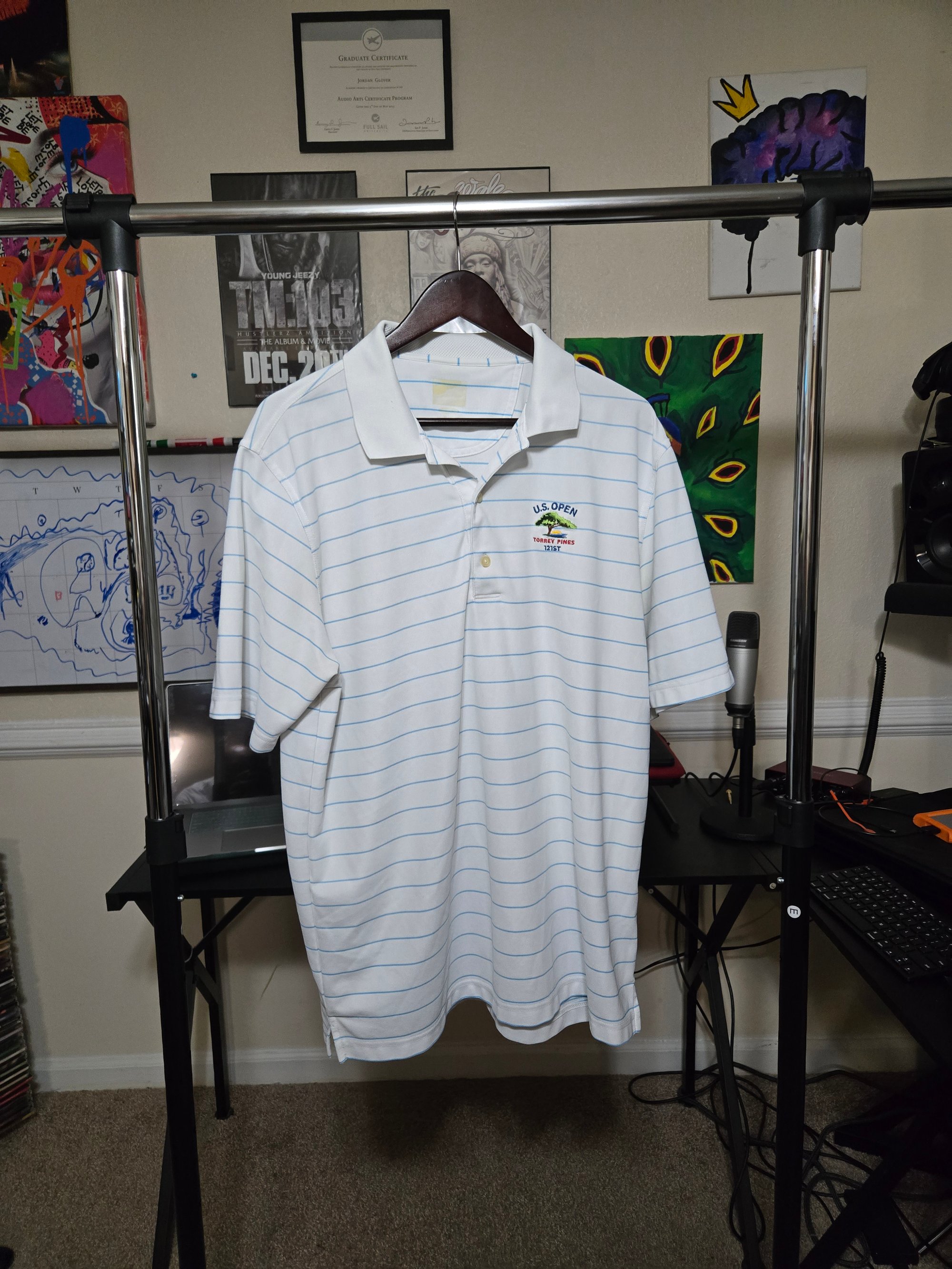 This Greg Norman polo is from the 2021 US Open tournament. Size is XL